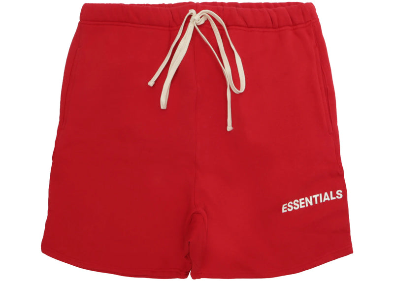 The Fear of God Essentials Graphic Sweat Shorts Red is now available at Side Kicks!