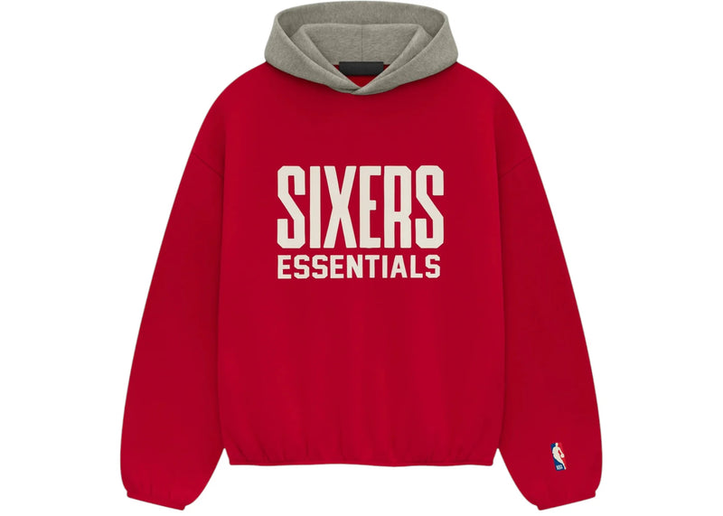The Fear of God Essentials Sixers Hoodie Red is now available at Side Kicks!