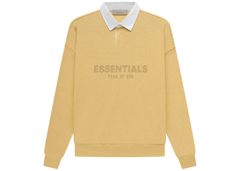The Fear of God Essentials Waffle Henley Rugby Light Tuscan is now available at Side Kicks!
