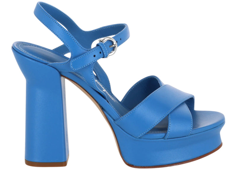 The Ferragamo Sonya Platform Heel Sandals Blue (Women's) is now available at Side Kicks!