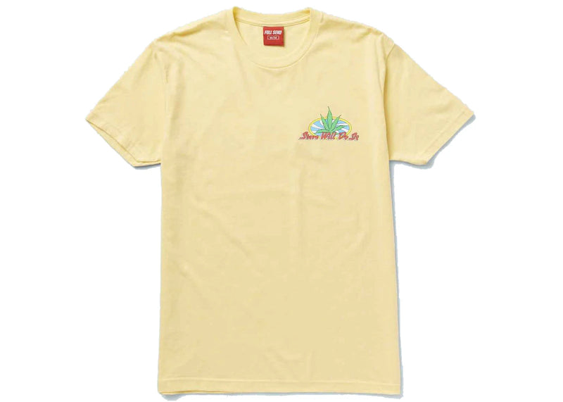 The Full Send Steve Will Do It Weed Tee Banana Cream is now available at Side Kicks!