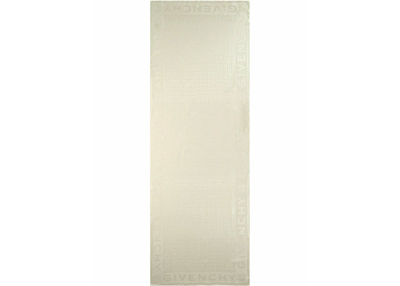 The Givenchy Logo Printed Silk Scarf Ivory is now available at Side Kicks!