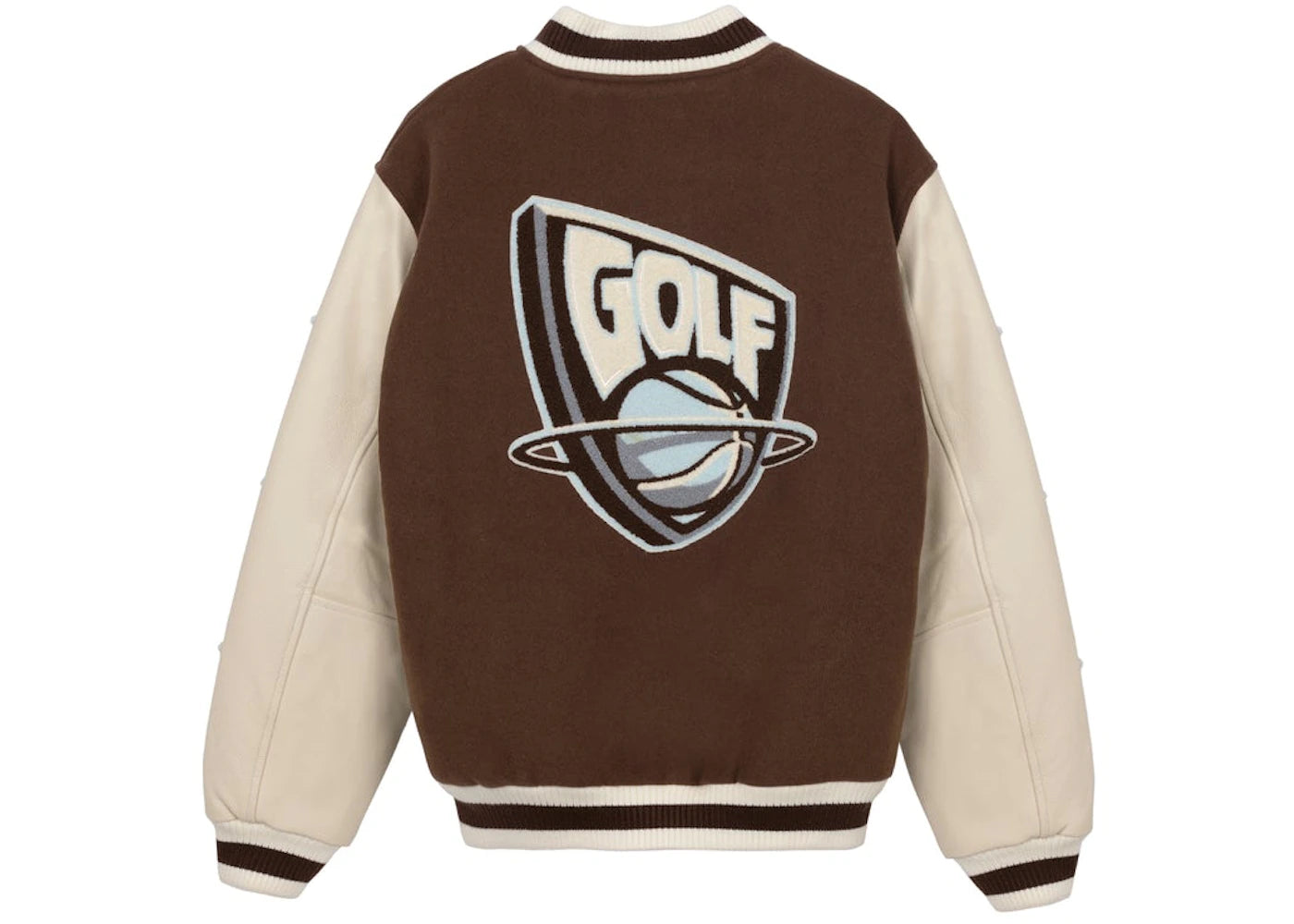 The GOLF Championship Letterman Jacket Brown is now available at Side Kicks!