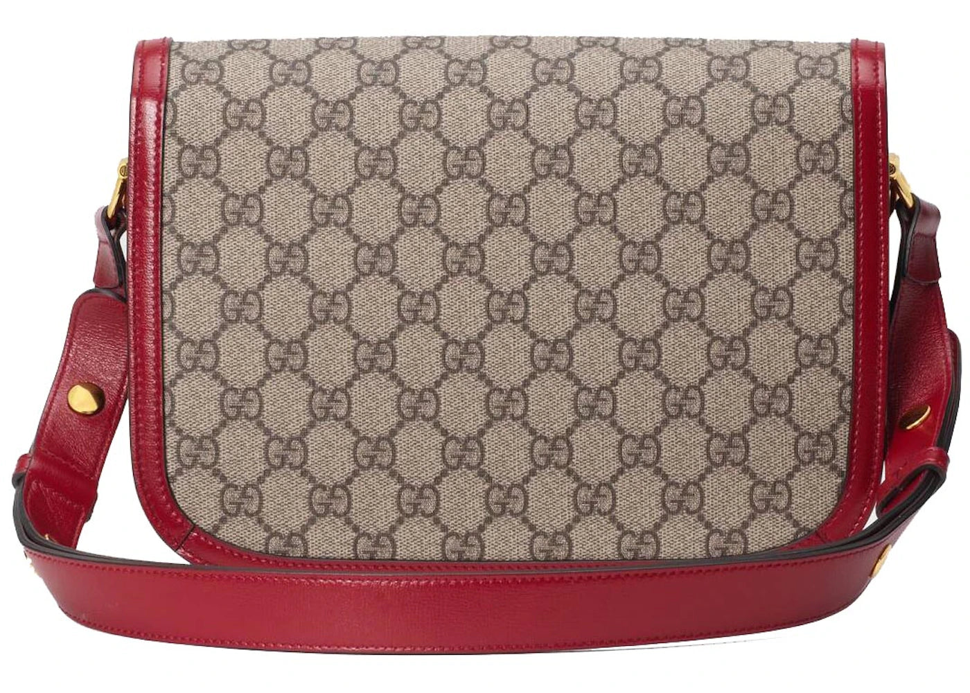 The Gucci 1955 Horsebit Shoulder Bag Small Beige/Red is now available at Side Kicks!