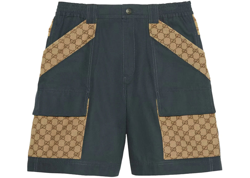 The Gucci Cotton Canvas Bermuda GG Insert Shorts Dark Grey is now available at Side Kicks!