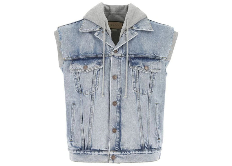 The Gucci Denim Sleeveless Jacket Blue is now available at Side Kicks!