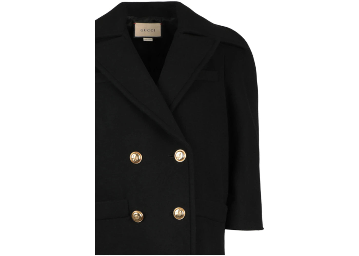 The Gucci Double Breasted Collared Coat Black is now available at Side Kicks!