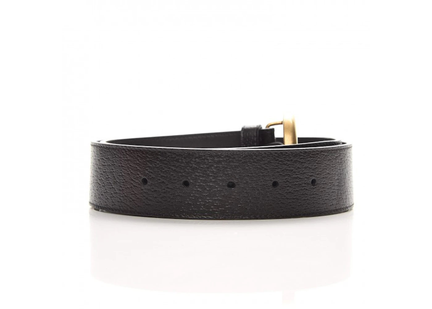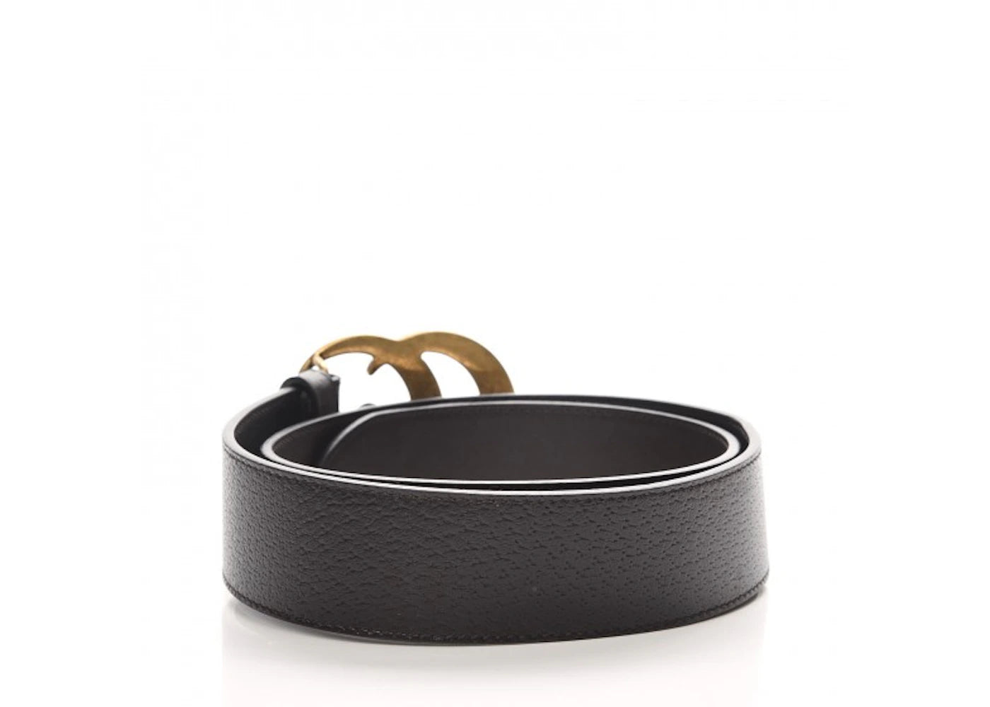 The Gucci Double G Textured Leather Belt Antique Brass Buckle 1.5 Width Black 406831 is now available at Side Kicks!