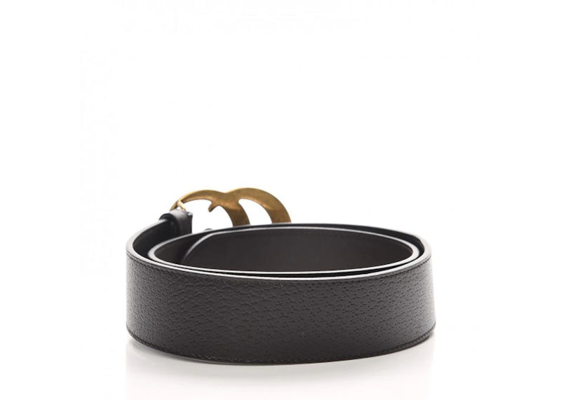Gucci Double G Textured Leather Belt Antique Brass Buckle 1.5 Width Black 406831