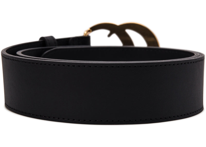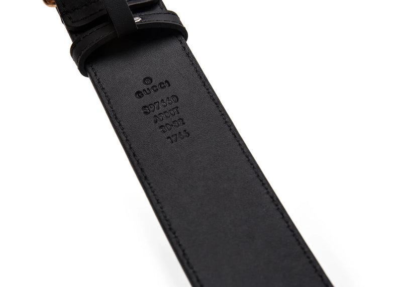 The Gucci Double G Wide Leather Belt Antique Brass Buckle 1.5 Width Black is now available at Side Kicks!