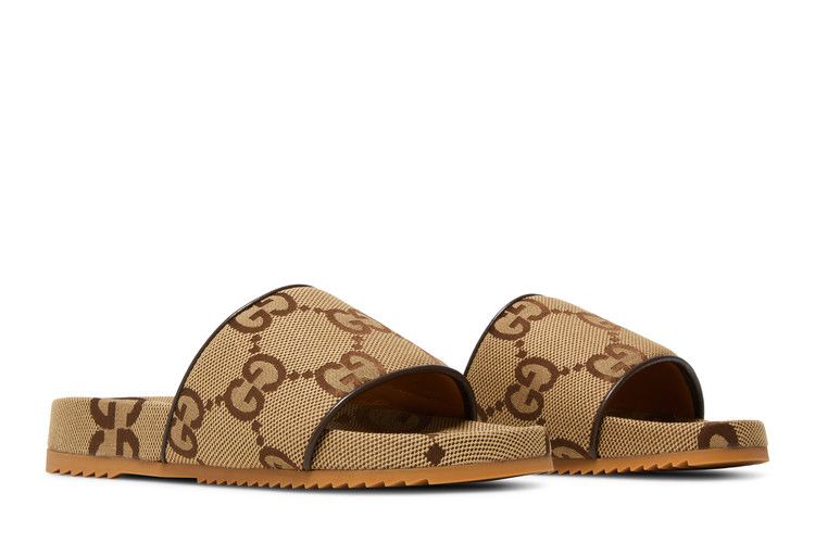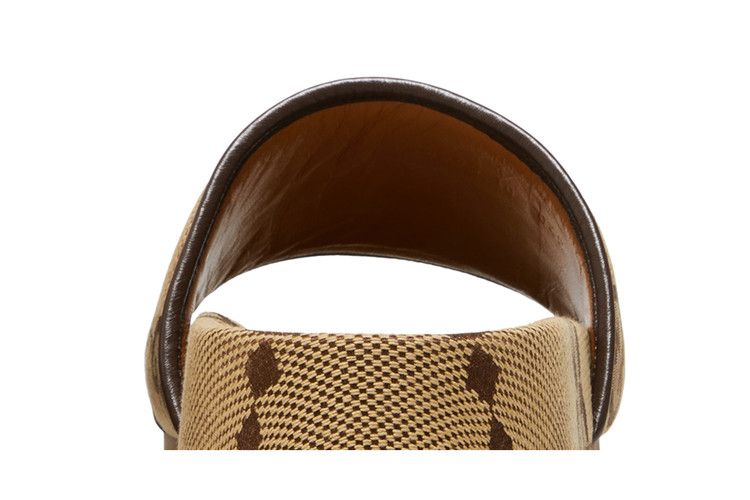 The Gucci maxi GG Canvas Slides Camel Ebony is now available at Side Kicks!