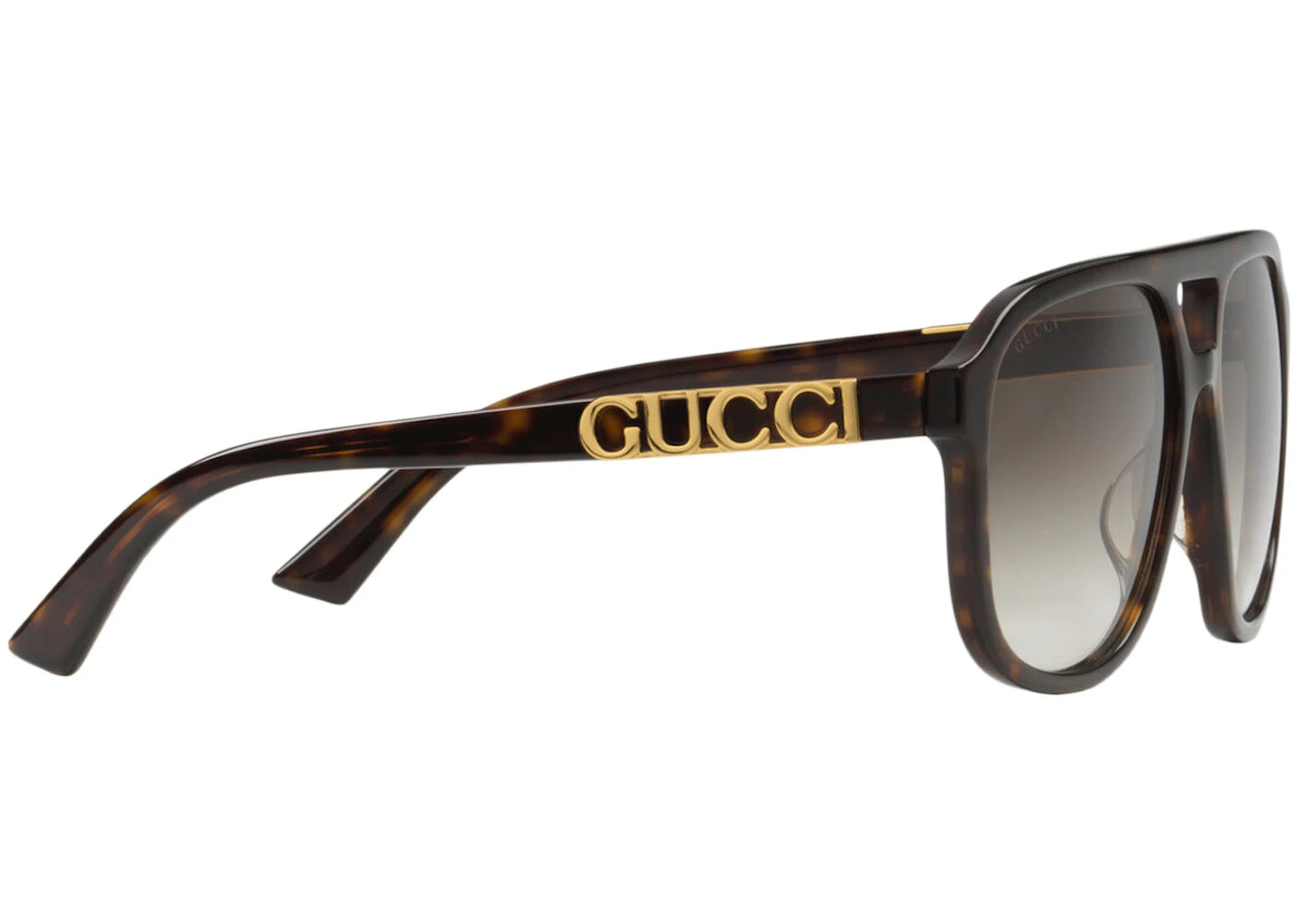 The Gucci Navigator Frame Sunglasses Tortoiseshell/Gradient Brown/Gold-tone (706688 J0740 2323) is now available at Side Kicks!