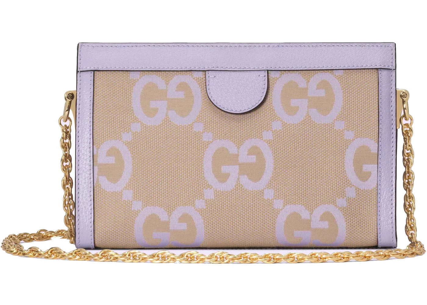 The Gucci Ophidia Jumbo GG Small Shoulder Bag Camel/Lilac is now available at Side Kicks!