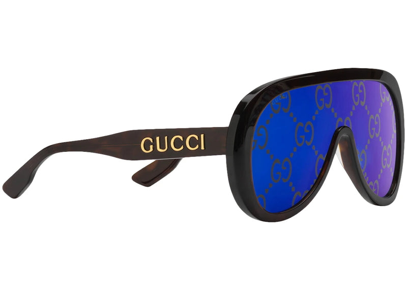 The Gucci Oversize Mask Sunglasses Tortoiseshell/Blue (720723 J0741 2340) is now available at Side Kicks!