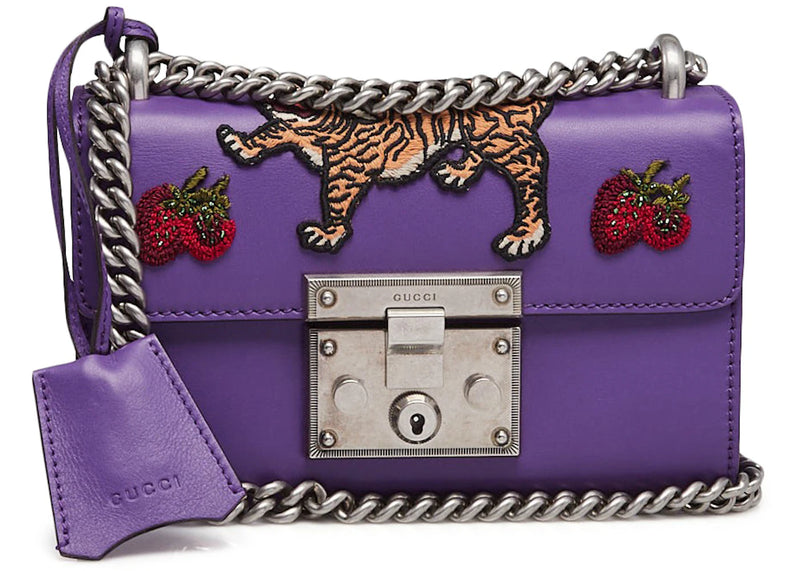 The Gucci Padlock Embroidered Tiger Small Purple is now available at Side Kicks!