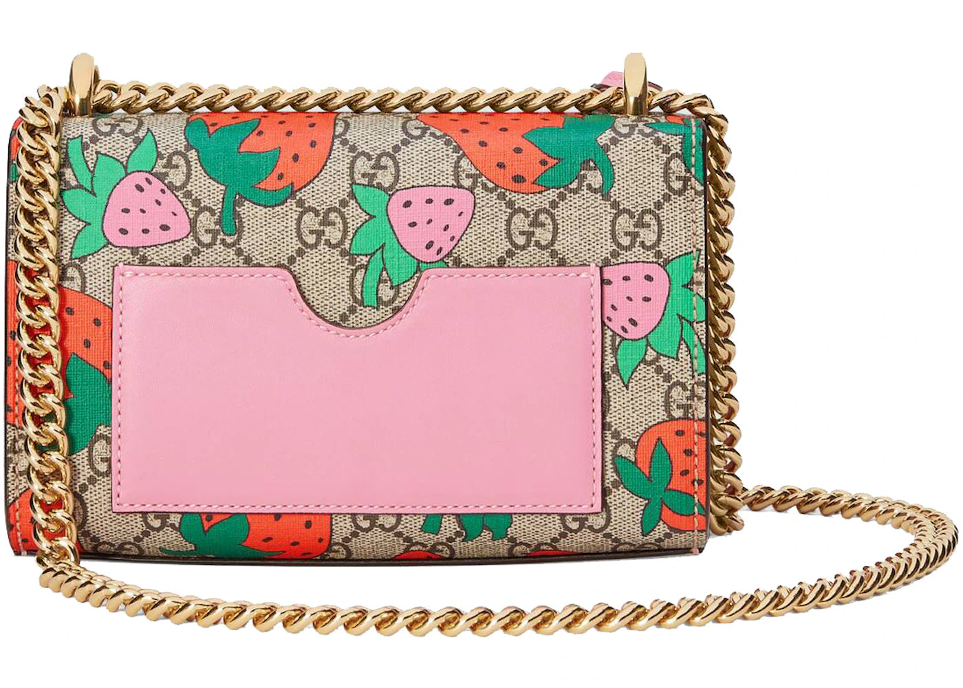 Gucci Padlock Shoulder Bag GG Strawberry Small Beige/Ebony Multicolor