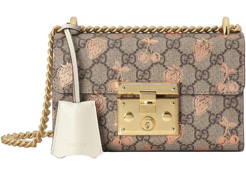 Gucci Padlock Shoulder Bag GG Supreme Strawberry Print Beige/Ebony/Metallic Cherry