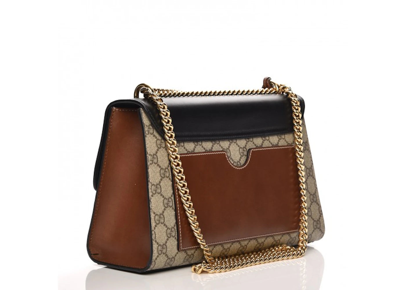 The Gucci Padlock Shoulder GG Supreme Medium Beige/Black is now available at Side Kicks!