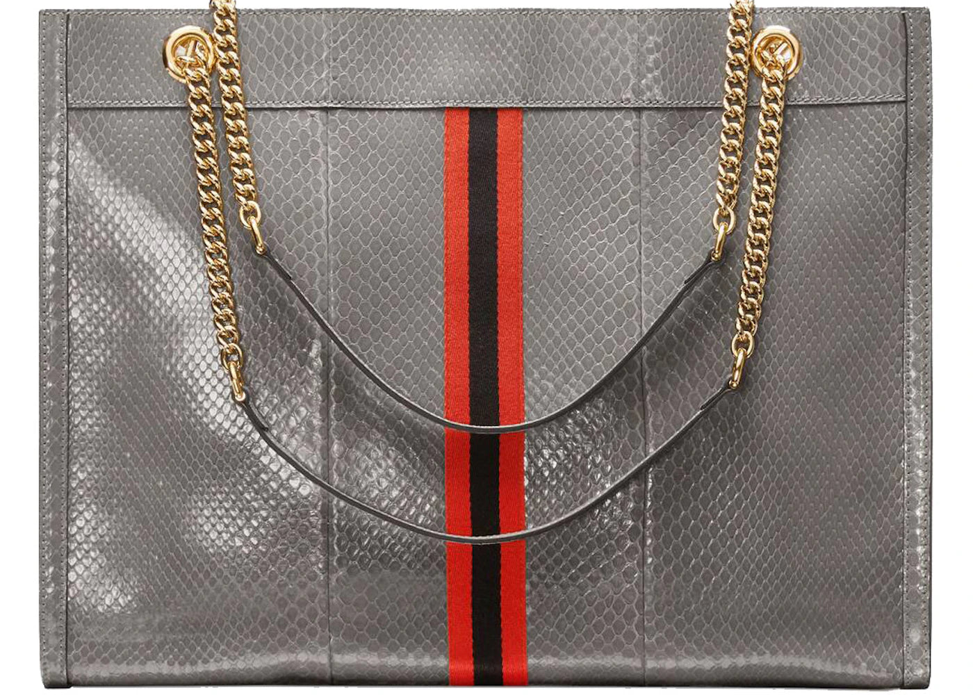 The Gucci Rajah Tote Snakeskin Large Dusty Grey is now available at Side Kicks!