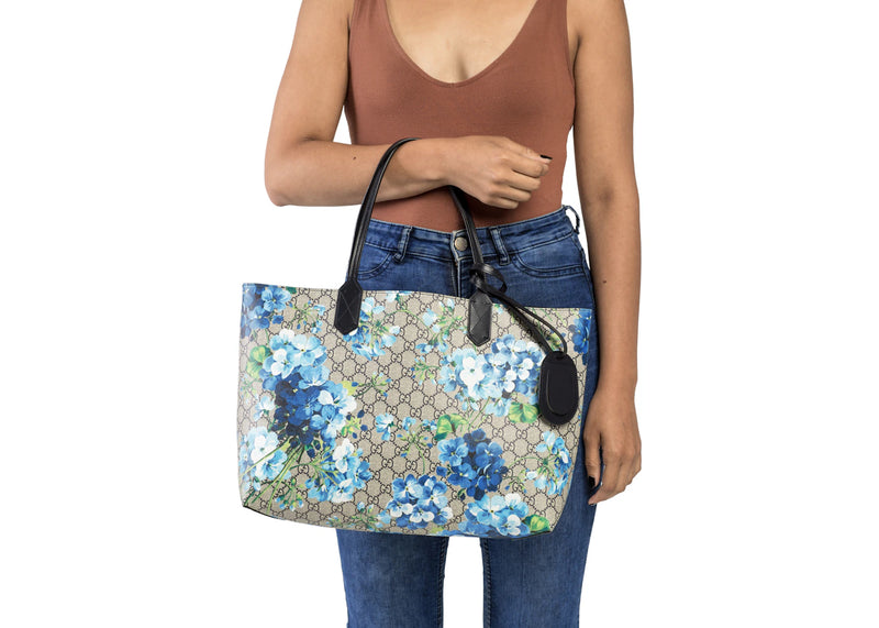 The Gucci Reversible Tote GG Blooms Medium Beige/Blue is now available at Side Kicks!