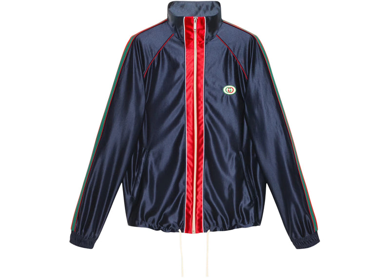 The Gucci Shiny Jersey Jacket With Web Blue is now available at Side Kicks!