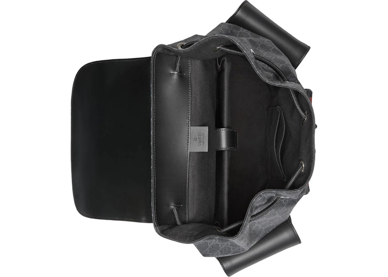 The Gucci Soft Backpack GG Supreme Blue/Red Web Black/Grey is now available at Side Kicks!