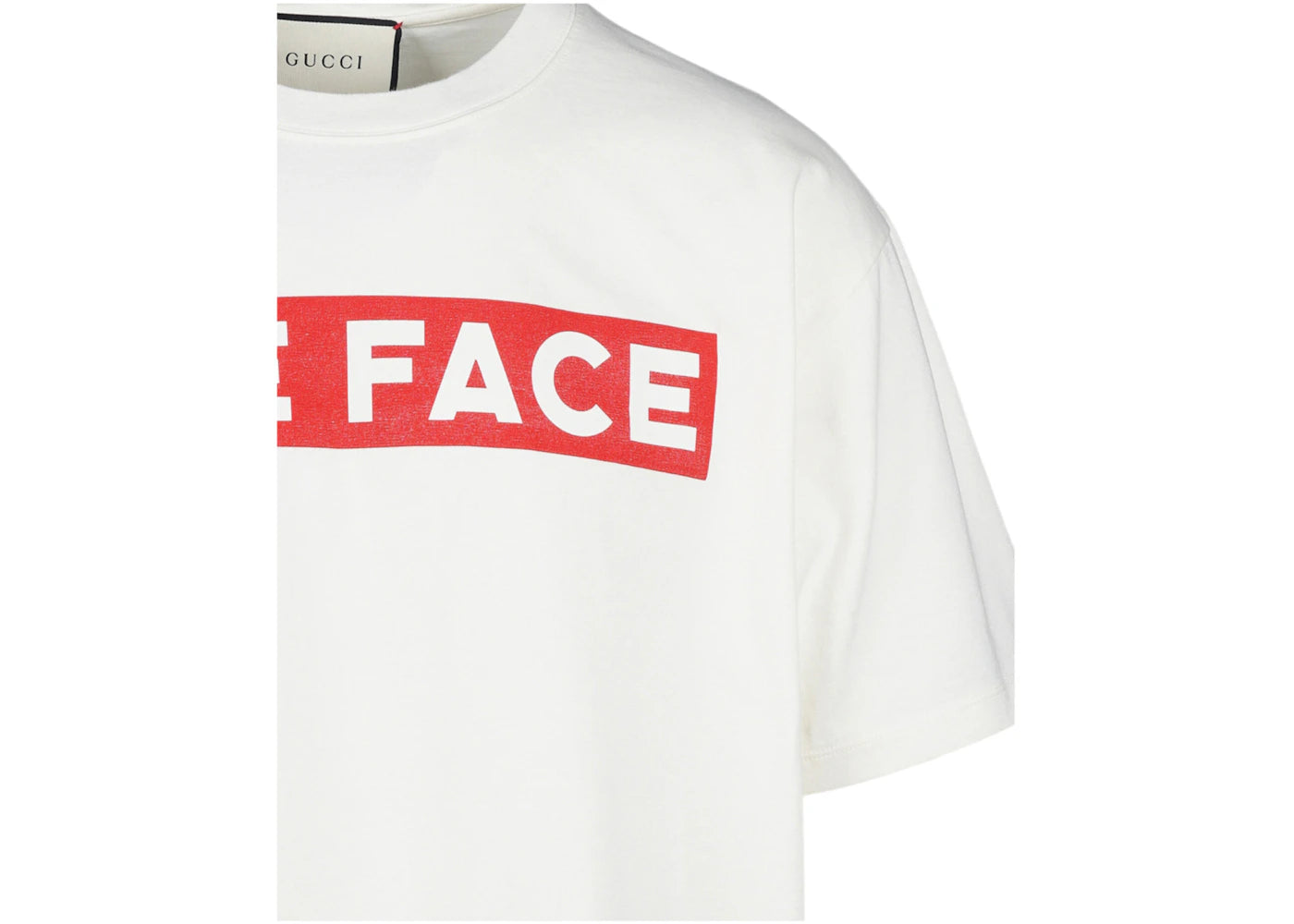 The Gucci "The Face" Logo Crew Neck T-shirt Milk is now available at Side Kicks!