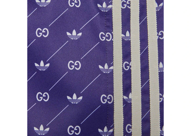 The Gucci x adidas Trefoil Print Shorts Ivory/Blue is now available at Side Kicks!