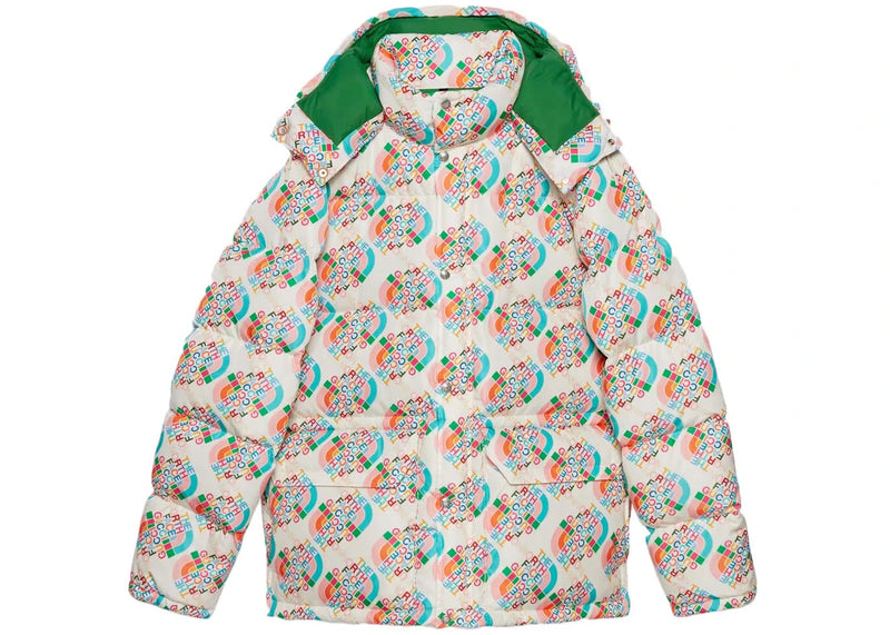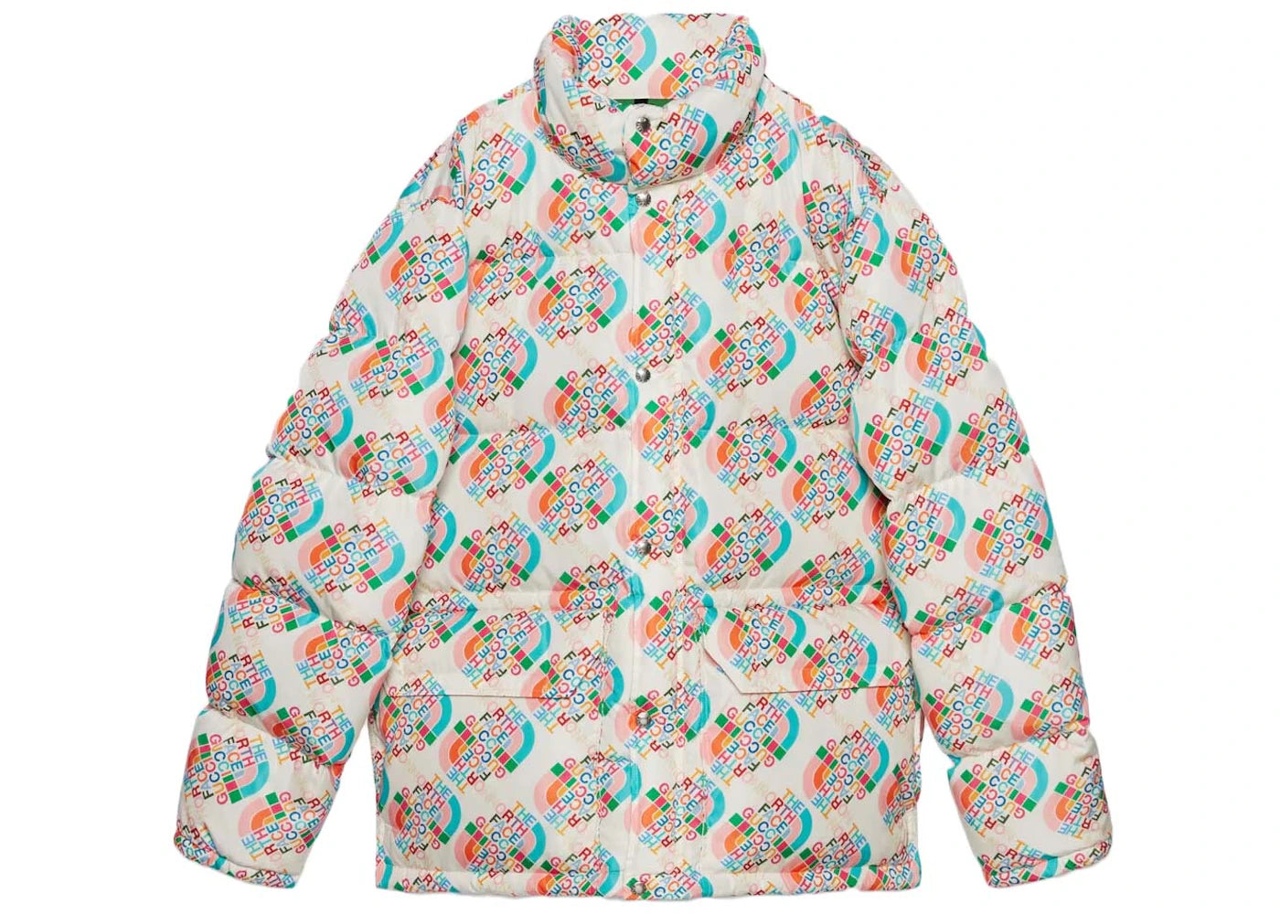 The Gucci x The North Face Down Jacket Ivory/Multicolor is now available at Side Kicks!