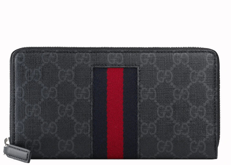 The Gucci Zip Around Wallet GG Supreme Web Black/Grey is now available at Side Kicks!
