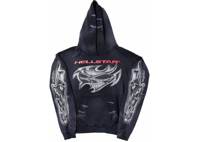 The Hellstar Airbrushed Skull Hoodie Black is now available at Side Kicks!