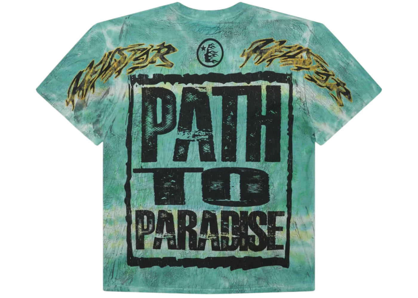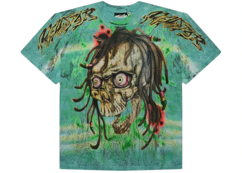 The Hellstar Rasta Skull Tye-Dye T-Shirt Green is now available at Side Kicks!