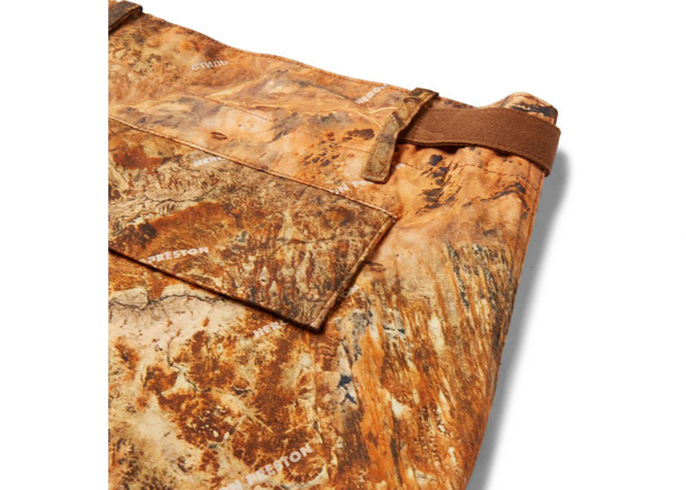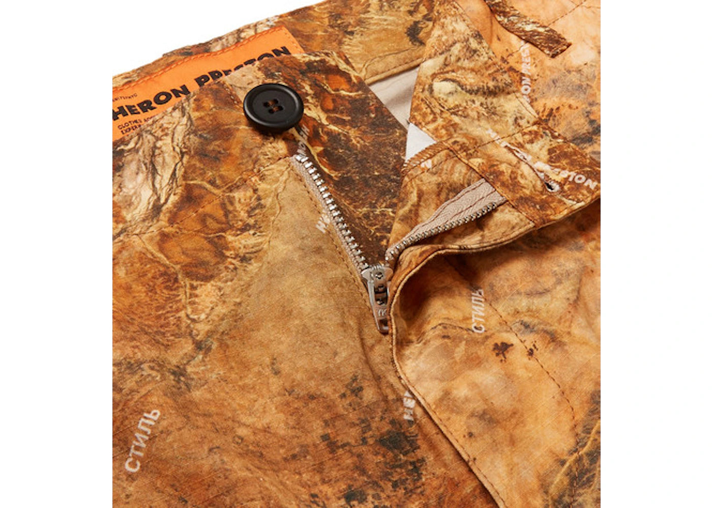 The Heron Preston Australian Outback Print Cargo Pants Orange/Multicolor is now available at Side Kicks!