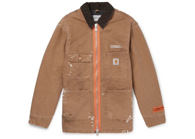 The Heron Preston x Carhartt Oversized Corduroy Collar Canvas Work Jacket Tan is now available at Side Kicks!