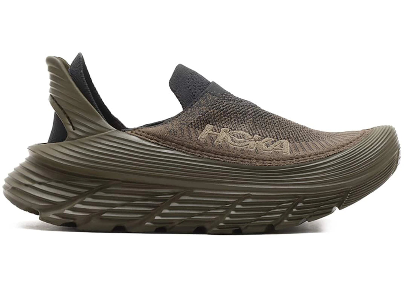 The Hoka Restore TC Dark Olive is now available at Side Kicks!