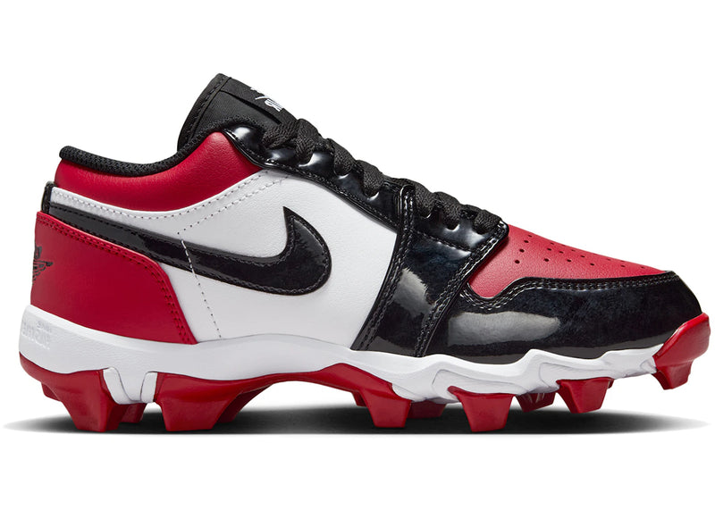 The Jordan 1 Low Cleat Patent Bred Toe (GS) is now available at Side Kicks!