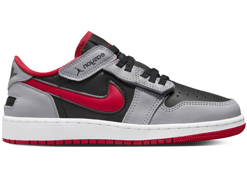 The Jordan 1 Low FlyEase Black Cement Grey White Fire Red (GS) is now available at Side Kicks!
