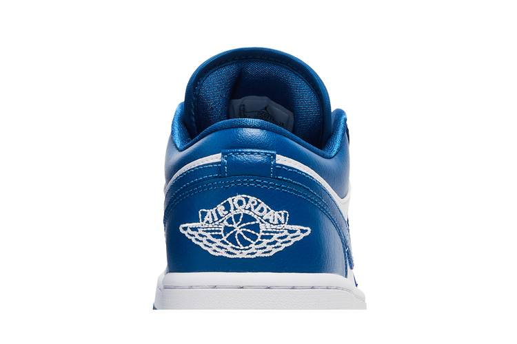 The women's Jordan 1 Low Marina Blue (W) features a white leather upper with Marina Blue overlays and Swooshes. It includes an embroidered Jordan Wings logo on the heel and...