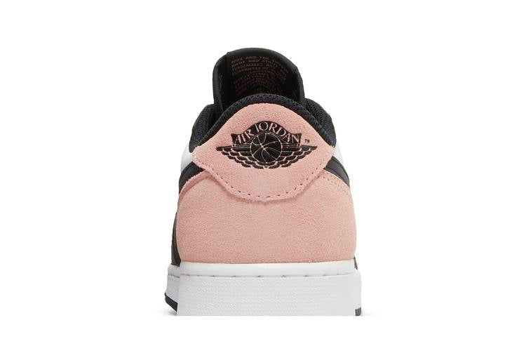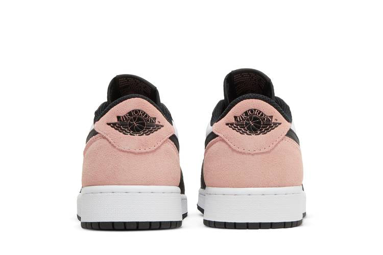 The Air Jordan 1 Low OG Bleached Coral (GS) is a stylish sneaker designed for big kids. Crafted with a mix of white leather, pink suede, and cracked black leather, this shoe features vintage detailing and pastel accents. The nylon tongue is adorned with a Nike Air tag, while the back tab showcases the iconic Wings logo. The rubber cupsole houses an Air-sole heel unit for lightweight cushioning. With a classic low-top silhouette, this sneaker is a versatile addition to any wardrobe.