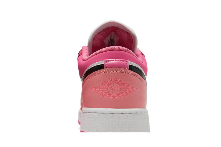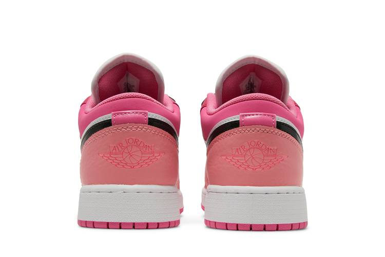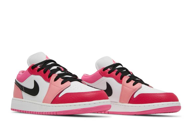 The Air Jordan 1 Low Pink Red GS is a grade school sizing sneaker featuring a Deep Red/ Hot Pink/Sift Pink/Black/White color scheme. It has an all-leather upper with White...