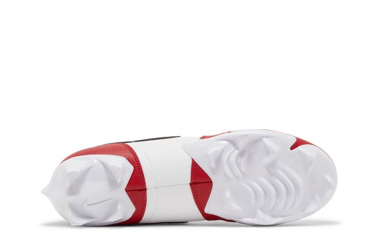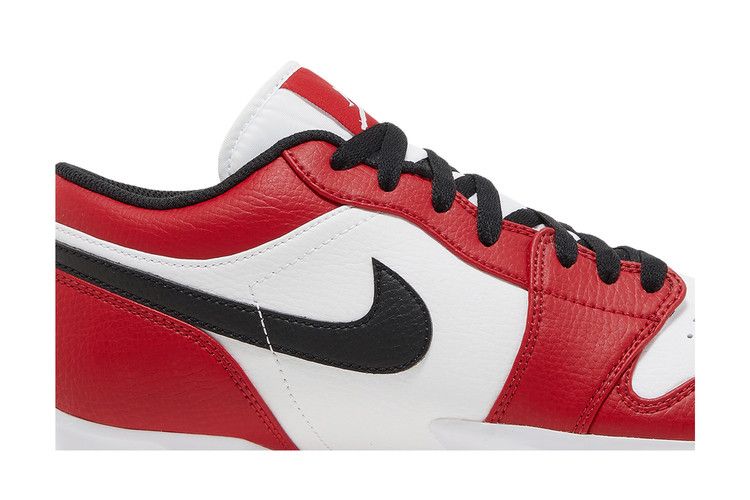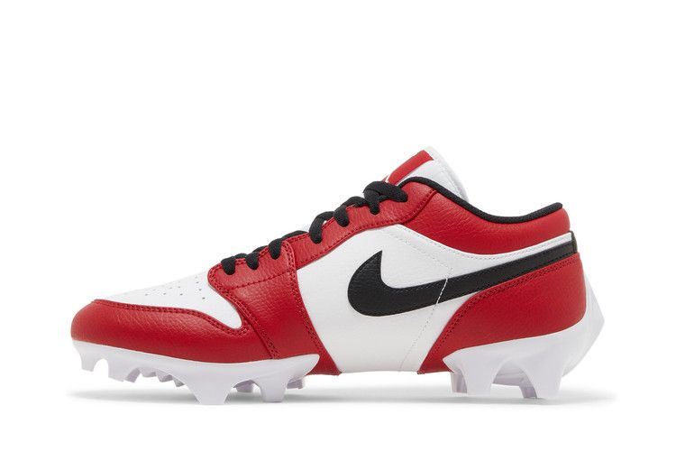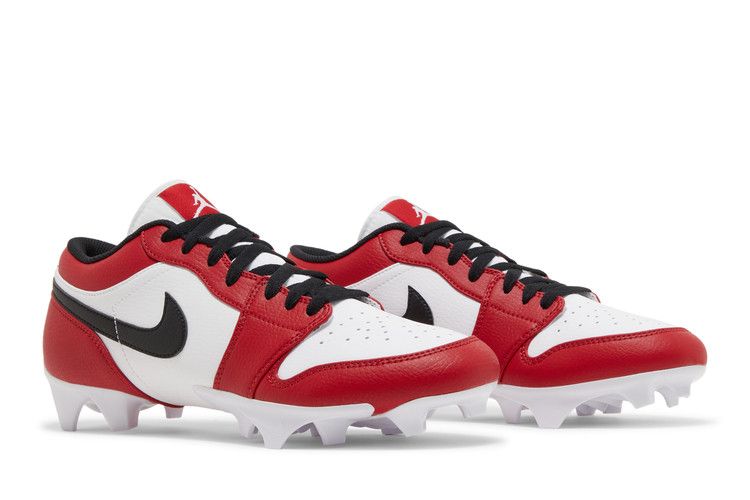The Jordan 1 Low TD Cleat Chicago (2023) features a white and University Red upper with black accents. Its low-cut design enhances ankle mobility for quick movements, while the reinforced leather toe box offers durability and breathability. The hard rubber sole includes a cleat pattern for multidirectional traction and stability on the field. Released on June 1, 2023, the Jordan 1 Low TD Cleat Chicago is available now at Side Kicks.