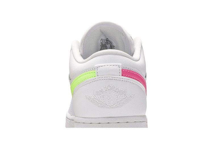 The Air Jordan 1 Low White Neon GS has a low-cut silhouette inspired by the original Air Jordan 1 basketball shoe, designed for grade school children. The sneaker features a...