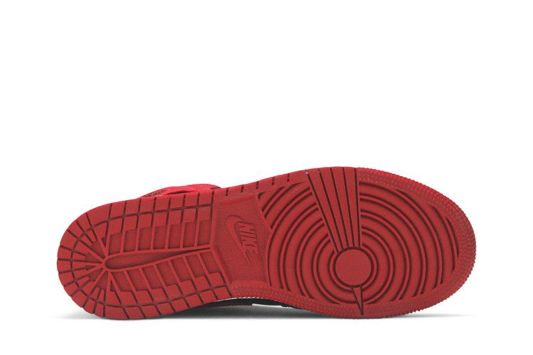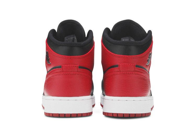 The Kids Air Jordan 1 Mid Banned (2020) (GS) features red leather on the ankle flaps, Swoosh, heel counters, and toe boxes. Black laces, leather medial side and toe panels, and tongue provide contrast. A white midsole and red outsole complete the design inspired by Michael Jordan’s first signature shoe. Released in November 2020.