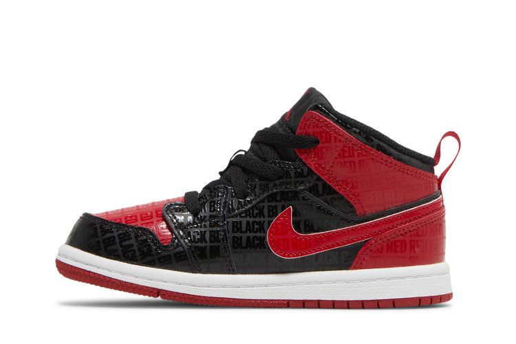 The Jordan 1 Mid Black + Red = Bred (TD) is now available at Side Kicks!