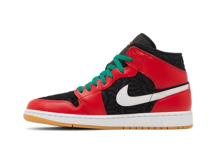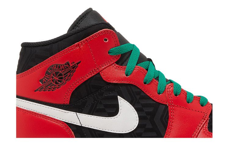 The Air Jordan 1 Mid SE Ugly Christmas Sweater (GS) features a festive holiday design with a red, black, white, and roma green colorway. Its upper is crafted with a...
