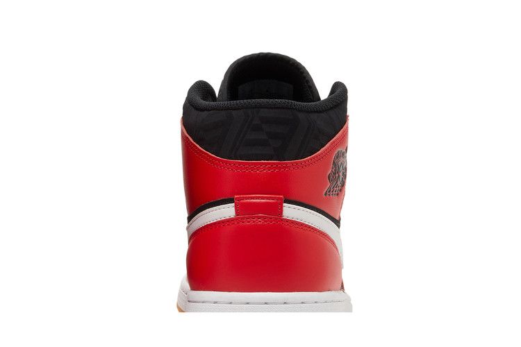 The Air Jordan 1 Mid SE Ugly Christmas Sweater (GS) features a festive holiday design with a red, black, white, and roma green colorway. Its upper is crafted with a sweater knit pattern for a seasonal look, along with perforations for breathability. The shoe includes a leather and synthetic upper, padded ankle collar, and tongue for comfort. A responsive Air-Sole unit in the heel provides cushioning and shock absorption. Released on November 30, 2021, the Air Jordan 1 Mid SE Ugly Christmas Sweater (GS) is available now at Side Kicks.