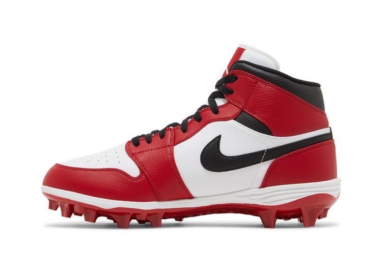 The Jordan 1 Mid TD Cleat Chicago (2023) features a University Red and white colorway with black accents. The upper combines premium leather and synthetic materials for durability and support....