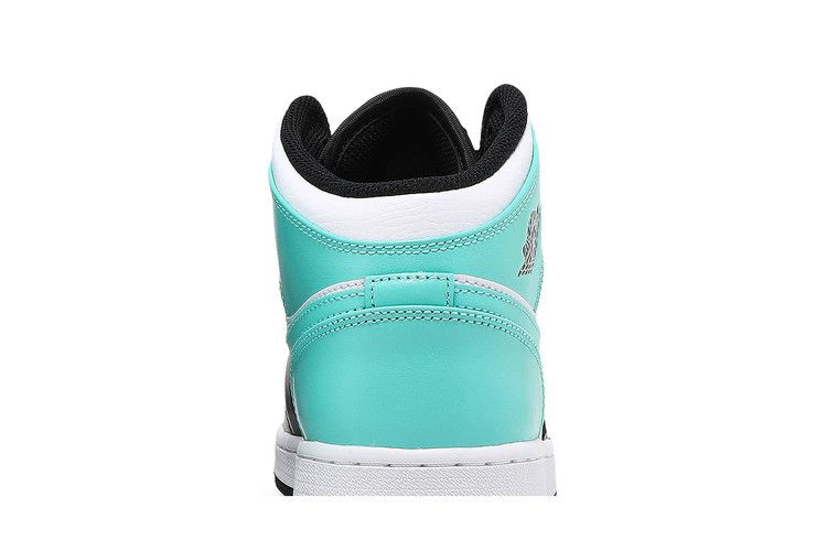 The Air Jordan 1 Mid Tropical Twist Igloo (GS) features a white leather upper with black overlays and teal accents on the heel and collar. The Swoosh, Jumpman logo, and...