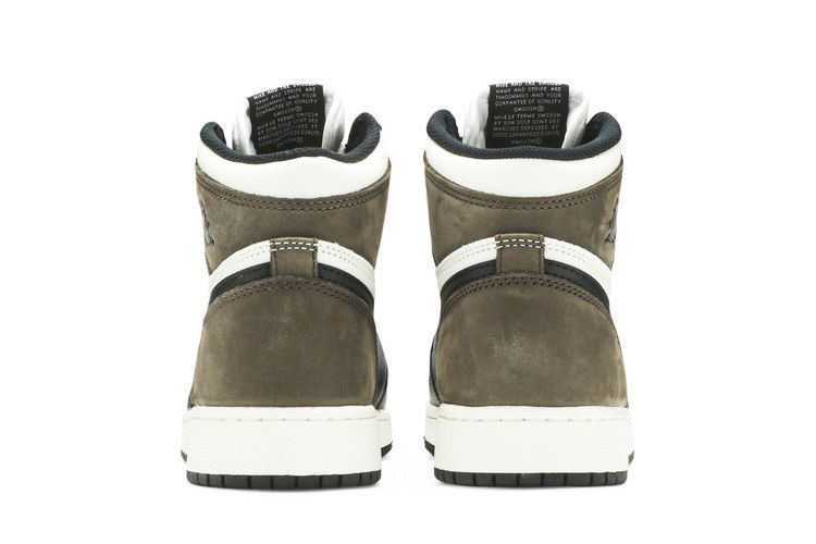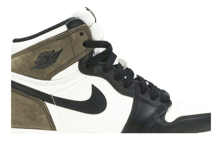 The Air Jordan 1 Retro High OG GS ‘Dark Mocha’ is designed for big kids and features a unique brown nubuck heel overlay and collar flap. The upper combines white leather with black leather overlays, showcasing the classic Wings logo on the lateral side. Nike Air branding is found on the tongue tag, completing the iconic design. Released in October 2020, this shoe continues the classic Jordan 1 color blocking theme with earth tones for a timeless look.