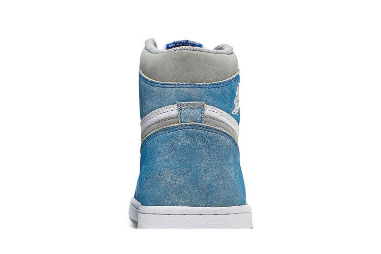 The Air Jordan 1 Retro High Hyper Royal Smoke Grey combines white leather with faded blue suede overlays for a weathered look. Neutral grey accents on the Swoosh and collar,...